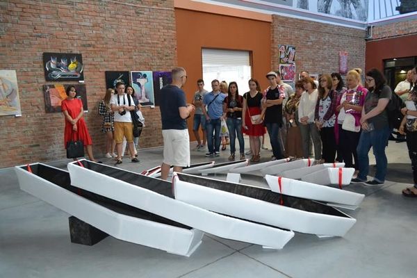 Виставкова частина фестивалю розмістилась у новому експоцентрі “Адреналін”. Свої композиції, переважно створені із побутових предметів, презентував луцький художник Руслан Чугай. Утім, пояснити ідею кожної видалося напрочуд непросто. Бо кожен із глядачів бачив та тлумачив роботи автора по-своєму. Одна з інсталяцій під назвою “Рало” символізує чоловіче – “плуг” та рілля – “жіноче” начала. Інша робота автора “Човни на суші” викликала бурхливе обговорення серед глядачів, бо хтось побачив у творі човни, інші – труни. Втім, як пояснив руслан Чугай у творі закладена ідея життєвого циклу людини, в якому кожен пливе у своєму фантастичному човні.