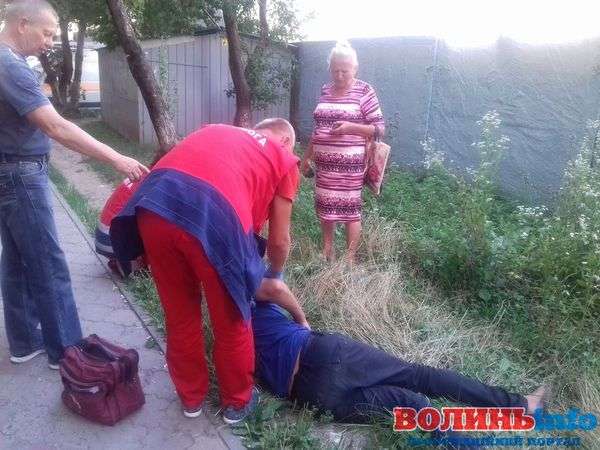 Молодий чоловік лежав поблизу будинку у траві у переході між будинками до супермаркету «Салют», що на проспекті Соборності. У хлопця були широко розкриті очі, він важко дихав, не міг підвестися, намагався розмовляти, кликав дружину. На вигляд йому – 20–25 років, пристойно одягнений, на руці виднілась кров – очевидно, від удару.