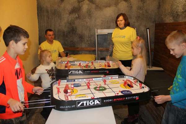 У третьому приміщенні дітлахи змагалися з настільного хокею, де потрібно бути швидким та спритним. Хлопчаки з великим азартом змагалися між собою, емоційно вигукуючи українські народні приказки.
