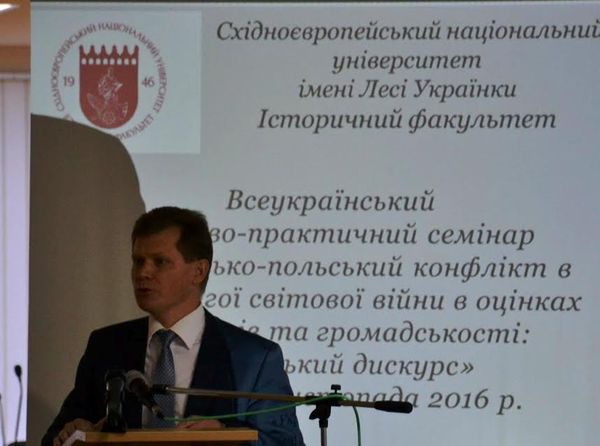 Всеукраїнський науково-практичний семінар на тему «Українсько-польський конфлікт в роки Другої світової війни в оцінках науковців та громадськості: український дискурс» відбувся у Східноєвропейському національному університеті імені Лесі Українки за організаційної підтримки декана історичного факультету Анатолія Шваба. Куратором цього напрямку в команді нардепа є його помічник, історик та краєзнавець Сергій Годлевський.
