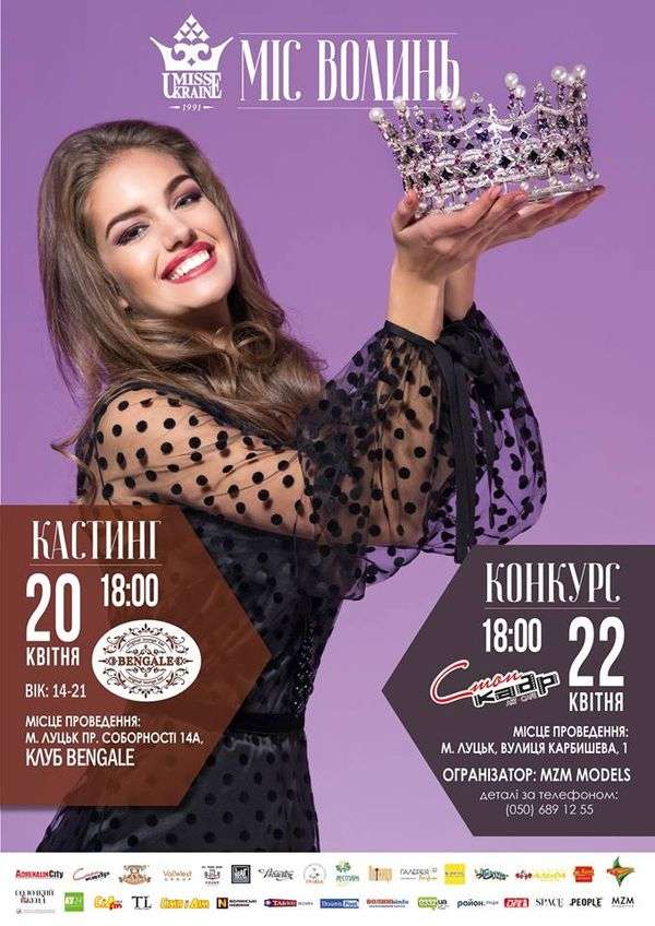 Лучан запрошують на кастинг та на конкурс краси «Міс Волинь».