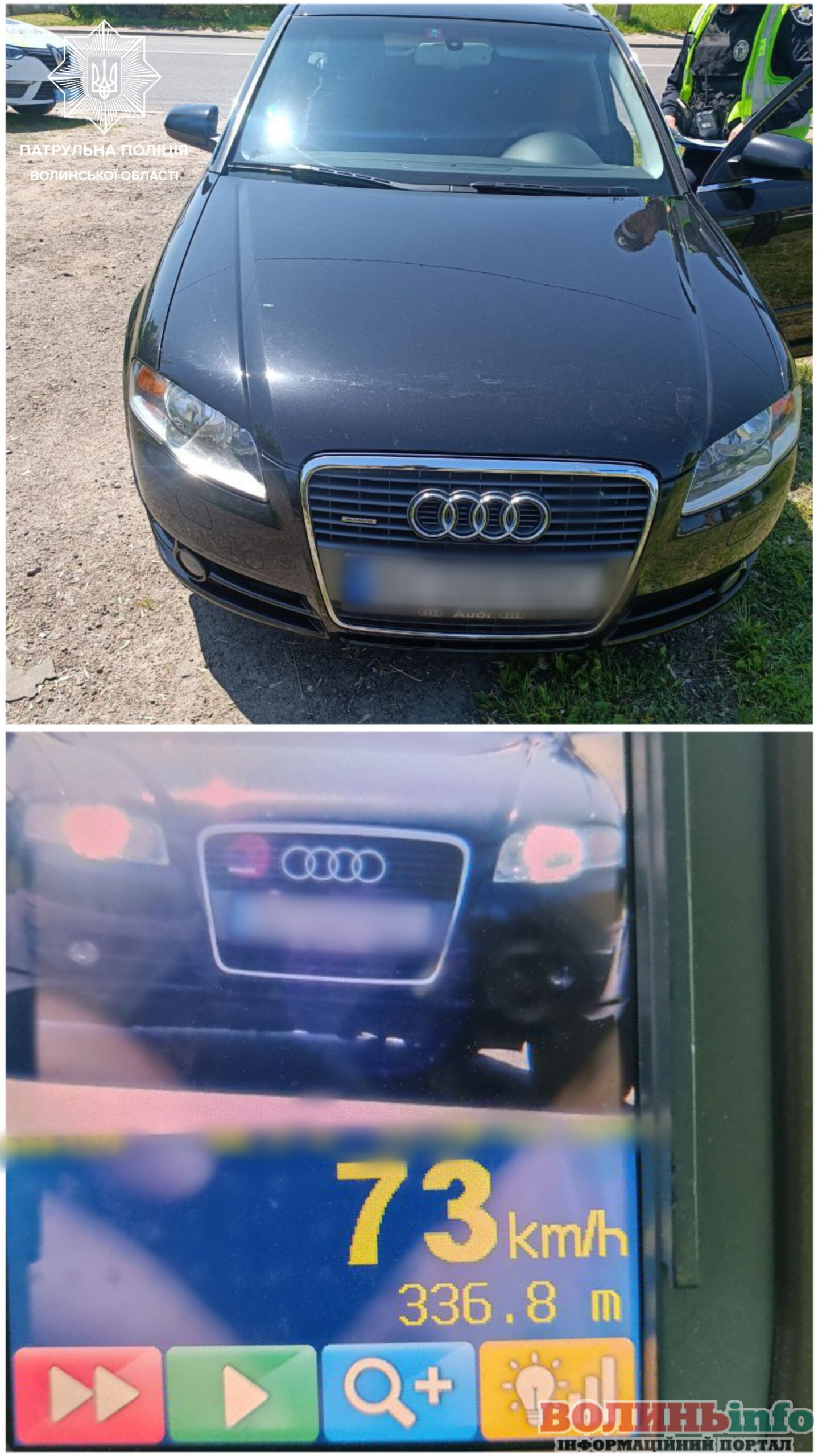 Схожа ситуація сталася на вулиці Ковельській. Там через недотримання швидкісного режиму поліцейські зупинили авто Audi A4: транспортний засіб рухався 73 км/год. Коли інспектори почали перевірку документів, то виявили, що водію 16 років і він не має посвідчення водія відповідної категорії. Крім того, юнак не пред’явив патрульним реєстраційний документ та страховий поліс.