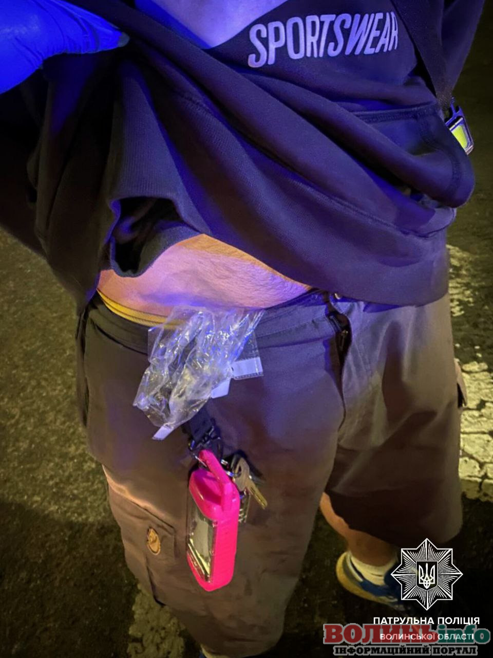 У Луцьку під час комендантської години поліцейські зупинили двох пішоходів-порушників: у одного з чоловіків виявили згортки з наркотиками