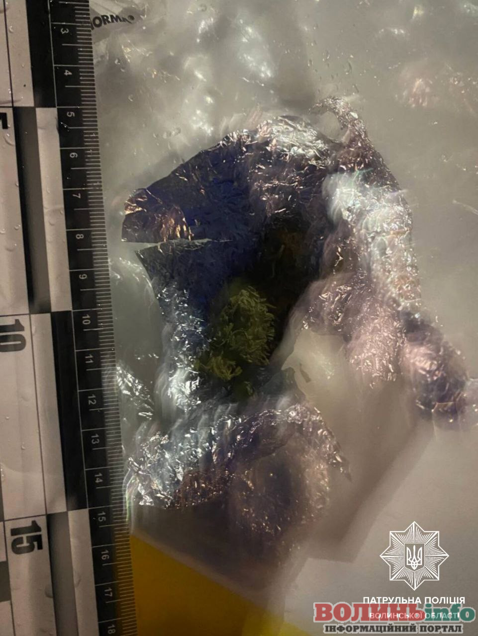 У Луцьку на вулиці Рівненській під час патрулювання поліцейські зупинили двох пішоходів, які переходили дорогу в невстановленому місці. В одного з них виявили 5 згортків з, ймовірно, наркотичними речовинами.