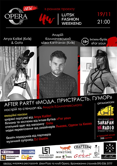 21:00-23:00 – LFW офіційна вечірка «Мода. Пристрасть. Гумор.»