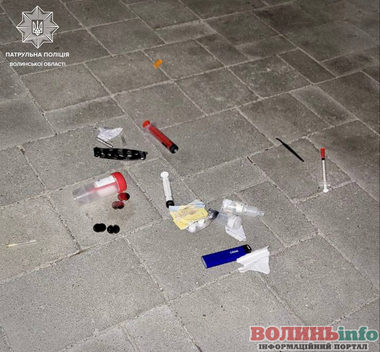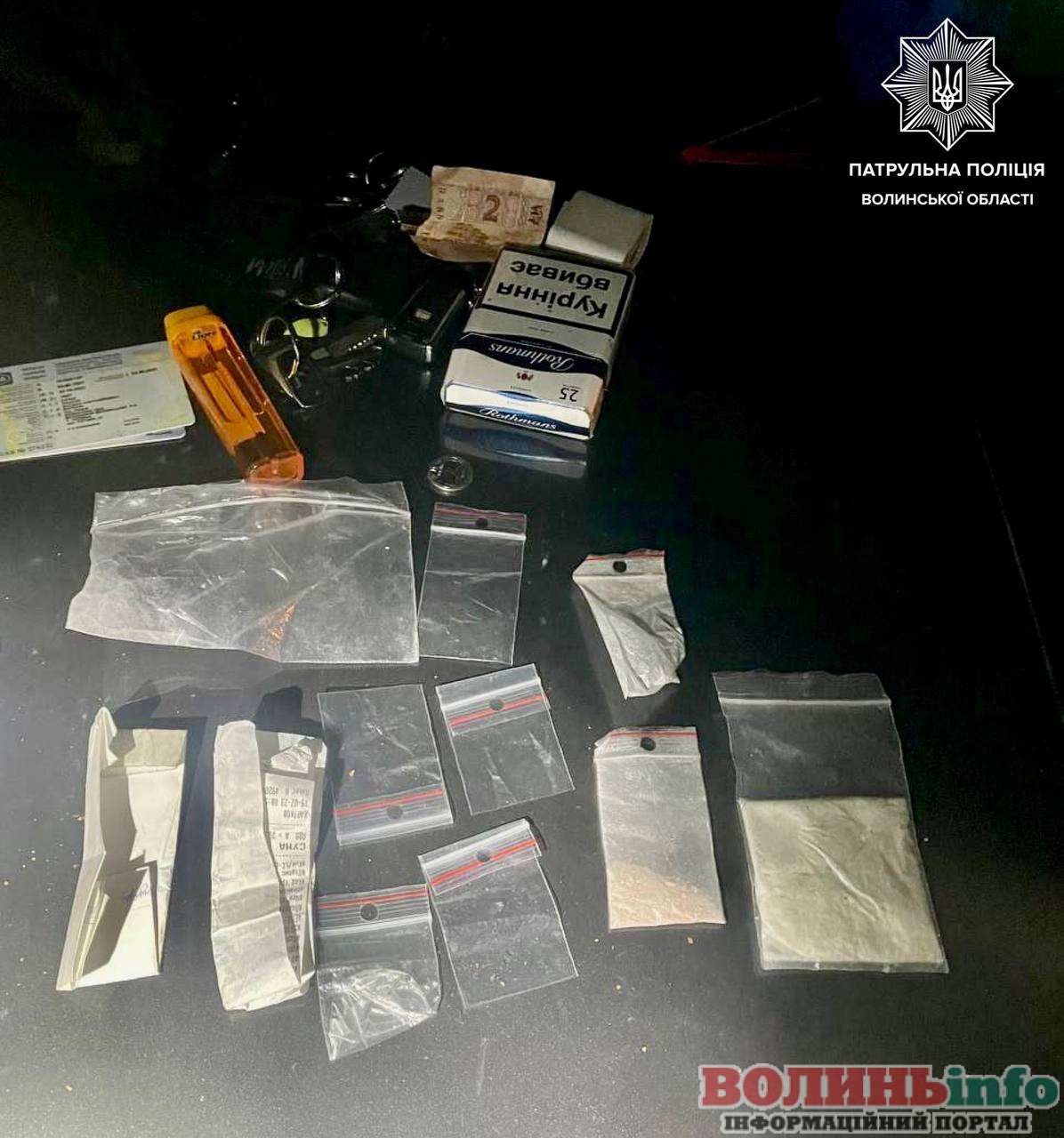 Ще одного 36-річного чоловіка, який, побачивши службове авто, почав нервувати, помітили патрульні у Луцьку, на проспекті Волі, також напередодні комендантської години. Під час поверхневої перевірки у нього, виявили ймовірно наркотичні речовини та шприци.