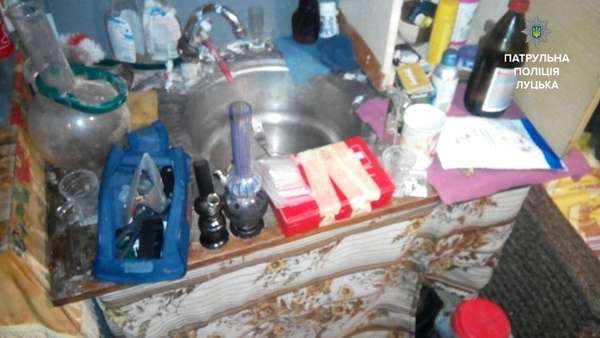 «Було помітно, що в цьому помешканні, можливо, варили наркотичні речовини, адже виявили підозрілі посудини, навіть з написами», – розповів інспектор Патрульної поліції Луцька Тарас.