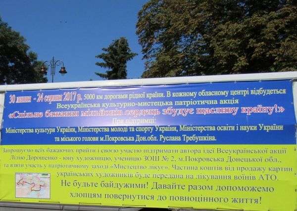 Ініціатива проведення акції належить юній художниці Лілії Дорошенко та ГО «Ти не один» з м.Покровська Донецької області, де 24 серпня відбудеться її урочисте завершення.