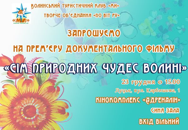 Волинський туристичний клуб «Ми», творче обєднання «По Віт Ру» запрошує на прем’єру фільму «Сім природних чудес Волині».
