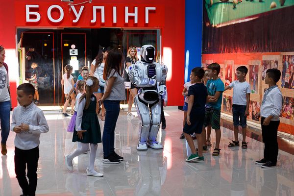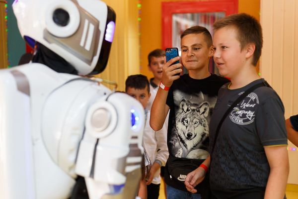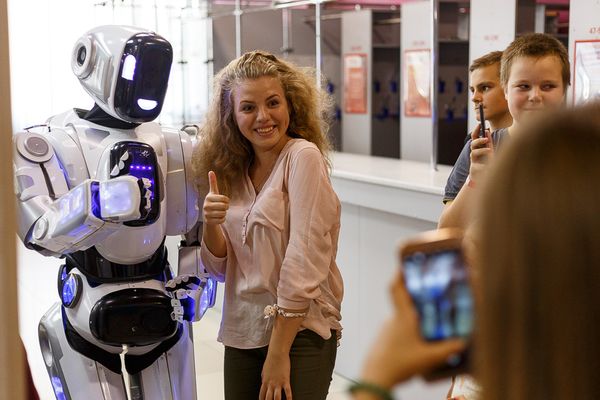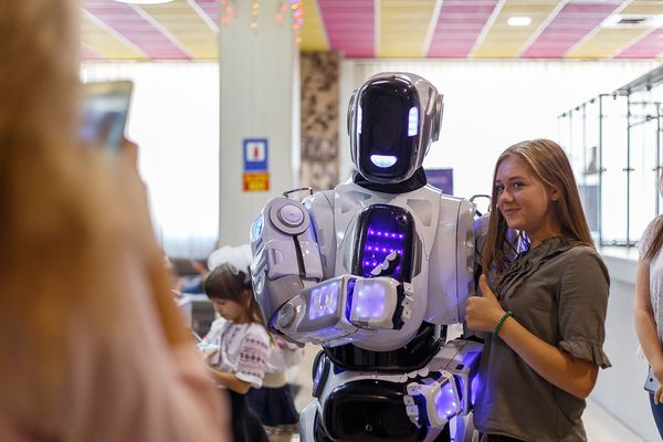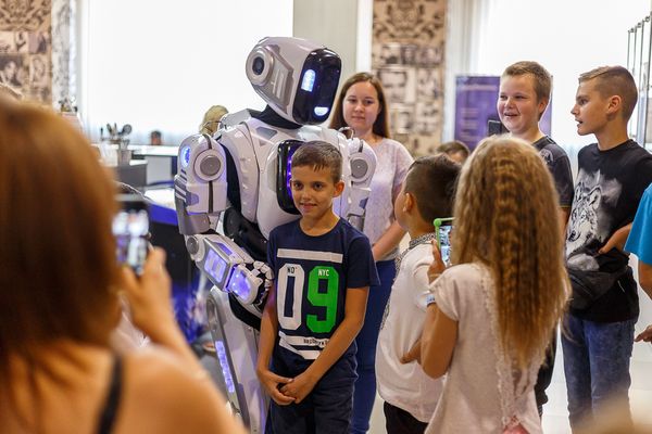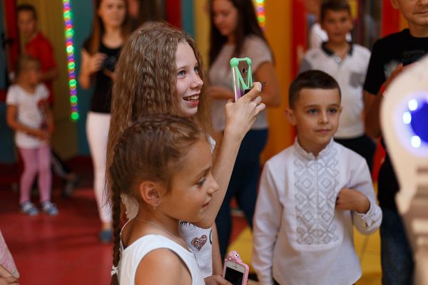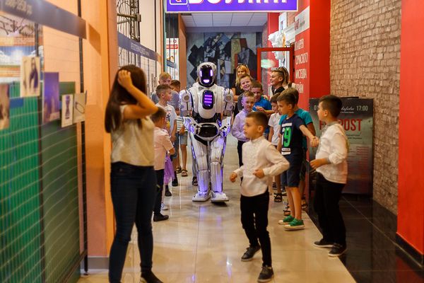 На вході гостей зустрічав справжній прототип робота – Данко, який пропонував знайомитися, фотографуватися та навіть «ділитися обіймашками».