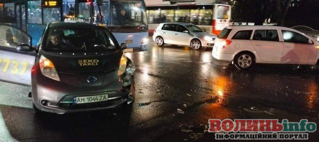 Близько 18.00 вчора, 13 грудня, у Луцьку на перехресті вулиць Відродження, Ветеранів і Писаревського трапилася автопригода за участі одразу трьох автівок.