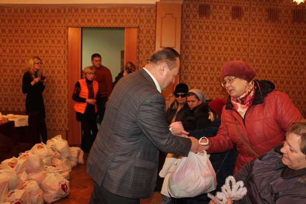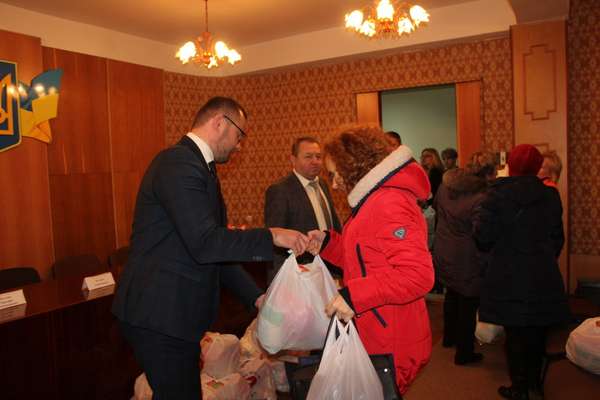 Потому Ігор Поліщук та Григорій Пустовіт вручили гостям заходу продуктові набори, придбані за кошти Волинського обласного благодійного фонду «Дитяча місія. Україна».