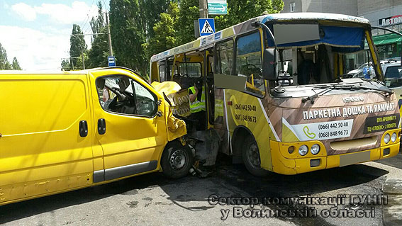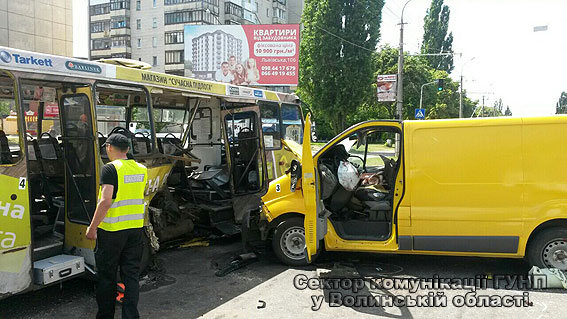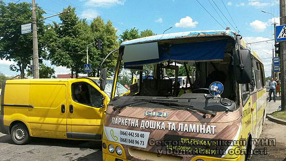 У неділю 19 червня цього року близько 13:20 на вулиці Гордіюк в обласному центрі зіткнулися маршрутне таксі та “Opel Vivaro”. Внаслідок автопригоди постраждали 11 осіб: 9 пасажирів маршрутки та 2 водії.