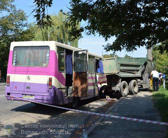 Сьогодні, близько 10 години, на вулиці Ковельській у Луцьку маршрутне таксі «Еталон» врізалося у вантажівку «Камаз». Внаслідок автопригоди травмувалося понад 10 людей. За фактом автопригоди слідчі розпочали кримінальне провадження.