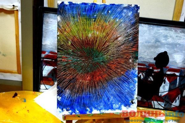 «Чаклували» над полотнами понад дві години. Слухали своє чуття і згідно з ним вели лінії так чи інакше. Комусь подобалось намальоване, хтось безперестанно правив і домальовував щось.