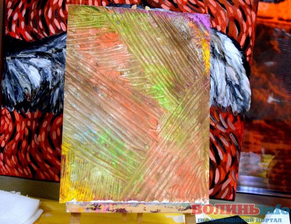 «Під час процесу варто відключати ліву половину мозку, а праву задіяти. Тоді ви не оцінюєте, те що робите, – зазначила пані Марина, – ваше завдання – пляма, колір, рух і нічого більше.»