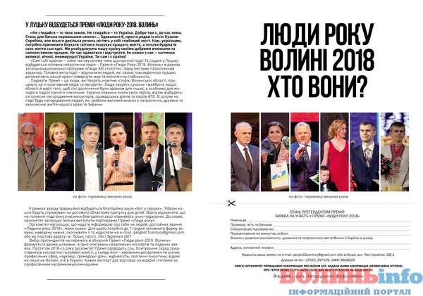 ЗАЯВКА НА УЧАСТЬ У ПРЕМІЇ «ЛЮДИ РОКУ-2018. Волинь» (Заповніть поля)