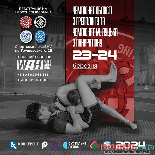 23-24 березня у спортивному комплексі ВНУ імені Лесі Українки відбудуться Чемпіонат Волині з грепплінгу та Чемпіонат Луцька з панкратіону серед дітей та дорослих.
