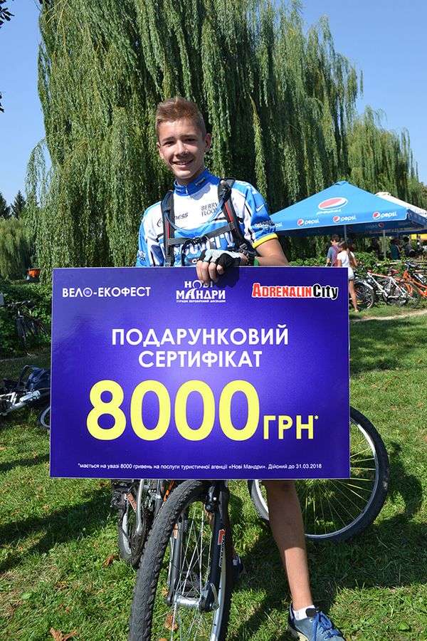 Щасливим переможцем та власником сертифіката став 15-річний лучанин Максим Лотиш. Максим давно захоплюється велосипедним спортом та вже вдруге бере участь у ВелоЕкоФесті. Як розповів хлопець, дізнався про велопробіг із соцмереж та вирішив разом з друзями долучитися до велофесту.