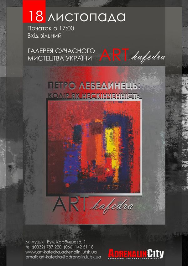 18 листопада в Галереї сучасного мистецтва України “Арт-кафедра” відбудеться відкриття виставки “Петро Лебединець: колір як нескінченність”.