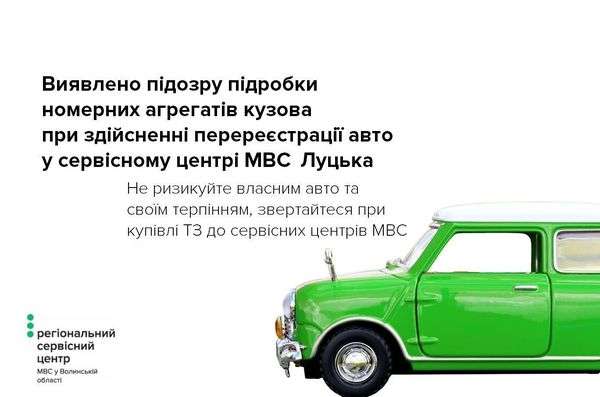 У сервісному центрі МВС 0741 виявлено автомобіль марки DAEWOO LANOS з ознаками підробки номера кузова. Для перереєстрації вищевказаного транспортного засобу 26 липня звернувся 19-річний житель Луцького району. Однак, під час проведення експертного дослідження автомобіля було встановлено, що його номер кузова піддавався змінам.