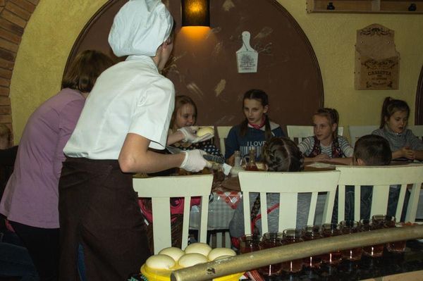 Діти зосереджено слухали всі настанови та поради досвідченого піцайола та захоплено створювали справжній італійський делікатес. У кожного вийшла своя оригінальна піца і найсмачніша, бо створена власними руками.