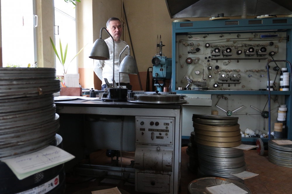 “Ось цей метрометр — 1959 року, — показує устаткування спеціаліст закладу Роман Давид. Працює тут із 1983 року. — Ця лупа — із 1948-го. А машина для промивання і реставрації плівки вагою 700 кілограм буде списана. Ми розуміємо, що якийсь іноземний мистецтвознавець і колекціонер віддав би мільйони за це добро. Однак ми не маємо права навіть продати в добрі руки, бо це все — державне, нема процедури. Не можемо музею зробити. Така ж ситуація із раритетними афішами. Це все — роботи художників, — показує сувій афіш до фільмів “Олеся”, “Наймичка”, “Тіні забутих предків”, “Циган”. — Це ж можна виставляти у власному музеї і мати постійний дохід на утримання контори. Однак цього спеціально не робиться. Бо нас треба знищити, щоб заволодіти приміщенням чи землею”.