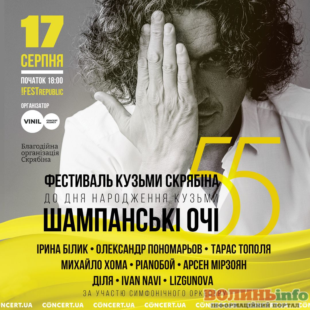 17 серпня до 55-річчя Кузьми Скрябіна батьки Андрія Кузьменка та концертна агенція VINIL організовують на фестиваль «Шампанські очі»
