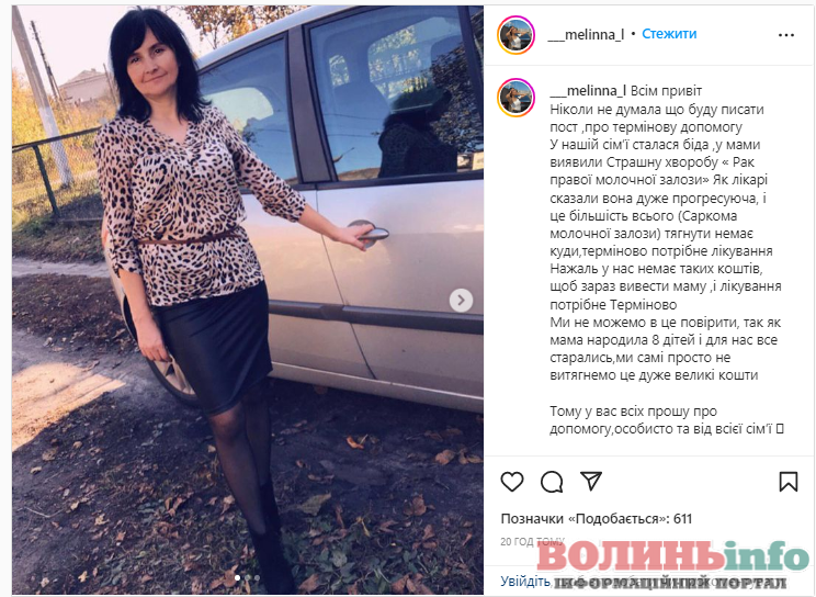 Донька Віталіни, Лариса Бабич (в мережі Instagam під ім’ям ___melinna_l) просить фінансової підтримки та поширення історії хвороби її мами.
