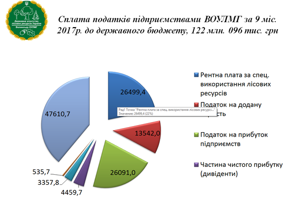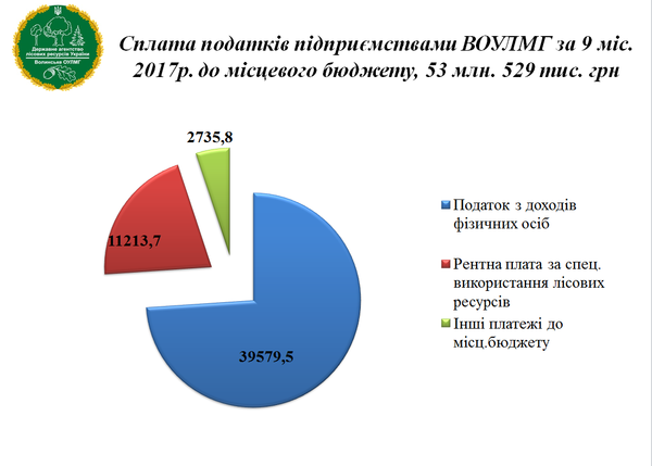 На завершення ІІІ кварталу поточного року волинські лісівники сплатили податків і зборів загалом 175 млн 625 тис. грн. Із цієї суми місцеві бюджети Волині отримали 53, 5 млн грн.