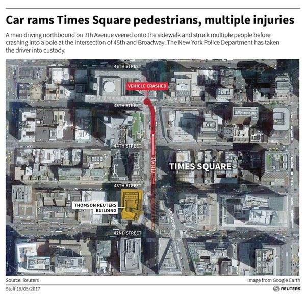 Автомобіль врізався у перехожих на площі Таймс-сквер у Нью-Йорку.