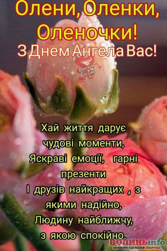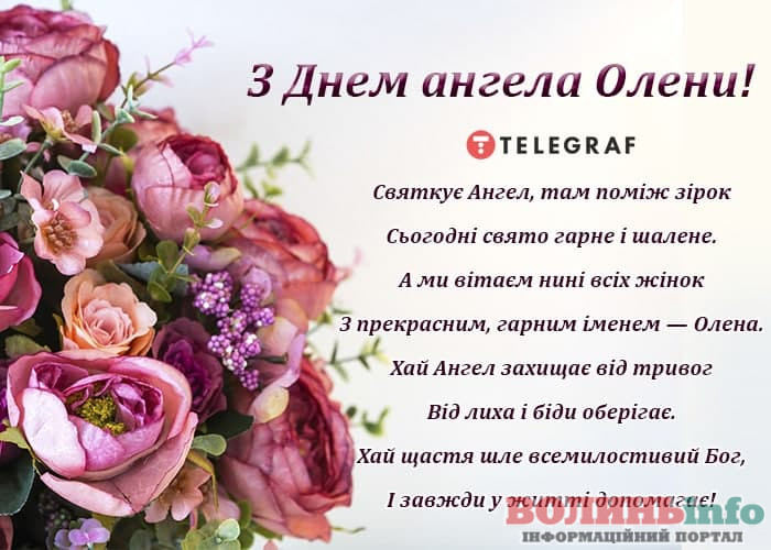 Оленочко, вітаю тебе з Днем ангела! Щиро бажаю справжнього жіночого щастя. Щоб твої очі завжди усміхалися, а серце випромінювало гармонію. Будь завжди красивою і привабливою. Здоров’я, достатку й насолоди від життя!