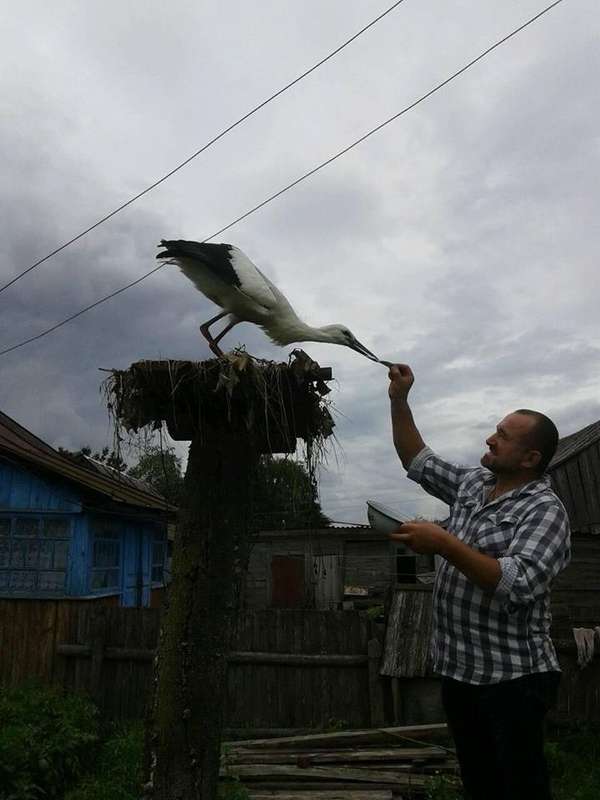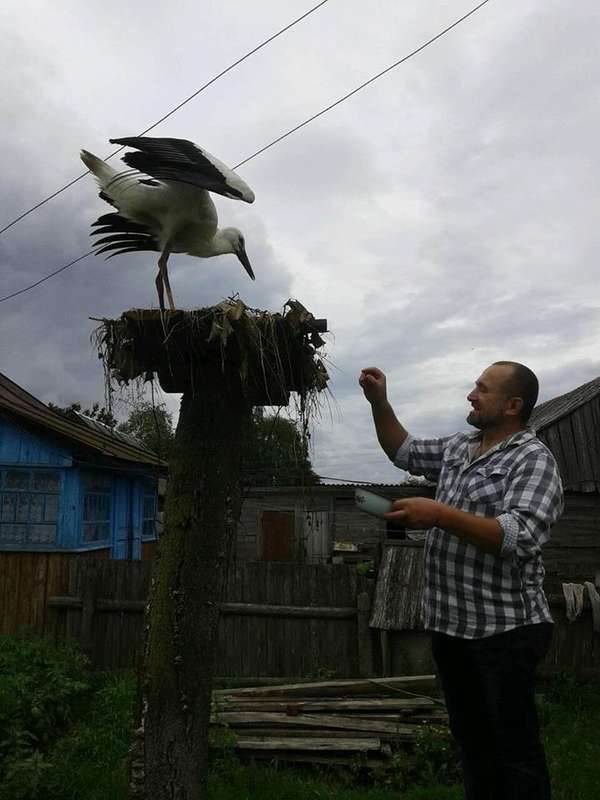 «У мами в селі лелеченя випало з гнізда… Зробили йому особисте гніздо і підгодовуємо. Особливо полюбляє салаку. Кормити з рук найулюбленіша справа», – поділився історією Олександр Приступа.