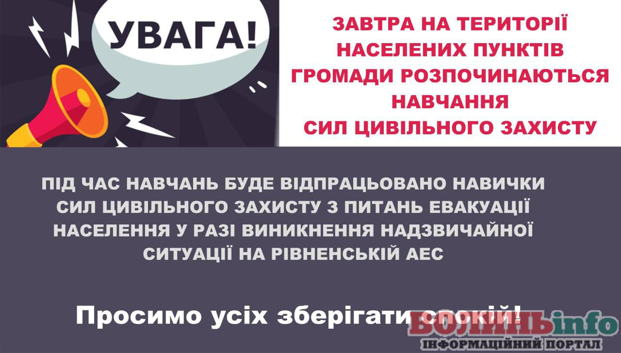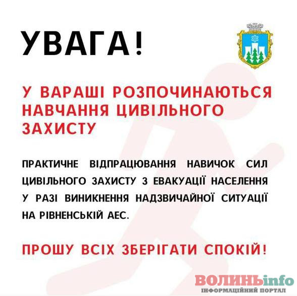 У Сарнах завтра також буде розпочато навчання по евакуації населення у випадку надзвичайної ситуації на Рівненській АЕС Влада просить усіх зберігати спокій!