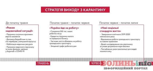 На початку травня – початку червня заплановане послаблення карантинних обмежень, яке стосується відновлення роботи підприємств й частково – громадського транспорту, створення нових робочих місць та кредитної підпримки малого та середнього бізнесу.