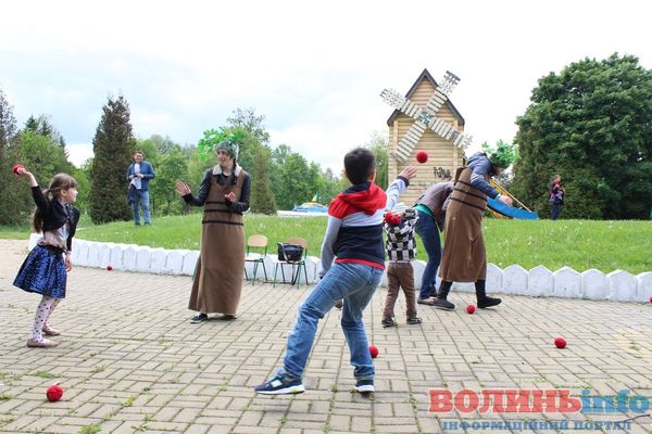 Упродовж дня на сцені – святкова програма. Виступають дітки, проводять різні конкурси та номінації. На центральній алеї парку розташували фестивальне містечко. Дітки тут стрибають на батуті, спілкуються англійською мовою, грають у джангу тощо.