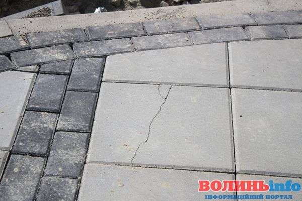 У центрі Луцька уже потріскала щойно покладена плитка на вулиці. ФОТО