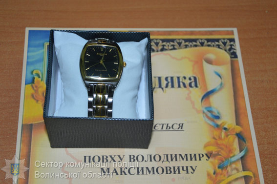 З нагоди перемоги на Чемпіонаті світу із самбо керівник волинської поліції вручив Володимиру Повху цінний подарунок – годинник.