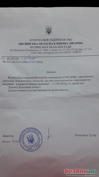 18-річна Вікторія Березовська із села Білостік потребує нашої з вами допомоги. Дівчині діагностували важку хворобу – розсіяний склероз в прогресуючій стадії
