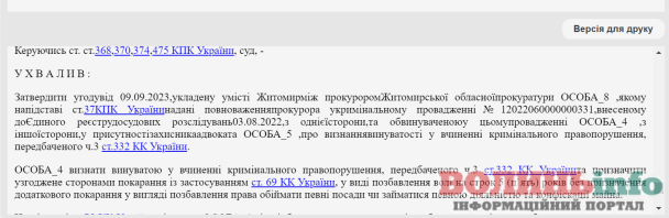 Цю інформацію містить рішення Богунського районного суду Житомира.
