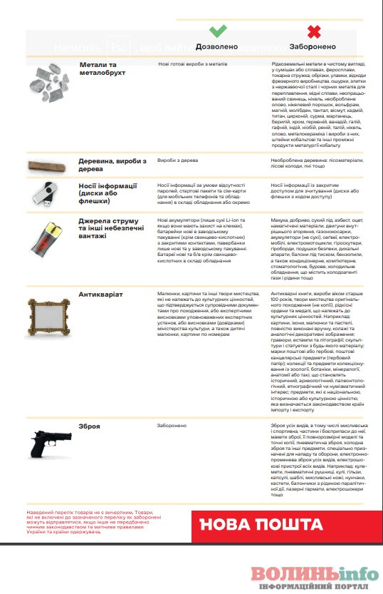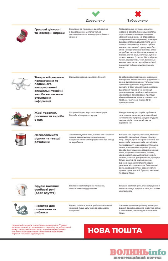 З повним переліком товарів та вантажів, які дозволено або заборонено відправляти у складі міжнародних посилок, можна ознайомитисьтут: