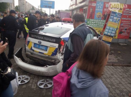 Автомобіль патрульних врізався в Mercedes, який їхав на дозволяючий сигнал світлофора. Дві дівчини, які перебували в авто, були госпіталізовані.