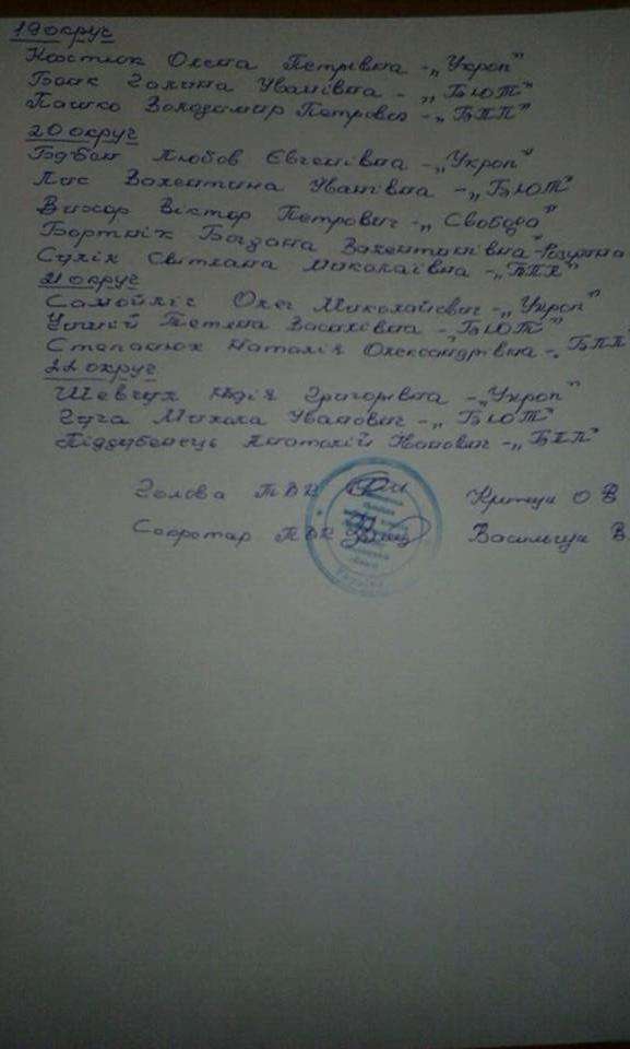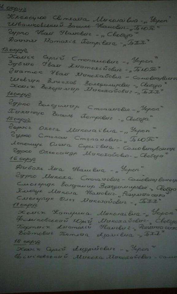 В інших округах виявили бажання балотуватись: по 3 кандидати – в ОВО № 3, № 6, № 19 та № 21-22; по 4 кандидати – в ОВО № 4, № 8, № 12, № 15 та № 17.