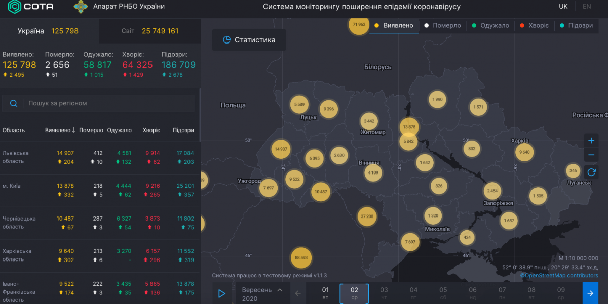 В Україні з початку пандемії підтверджено 125 798 випадків COVID-19. Одужали більше 58 тисяч людей та більше 2,5 тисяч людей померли.