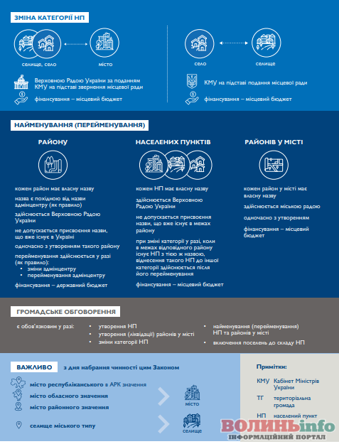 В Україні залишаються лише міста, селища та села. Тож, міськими населеними пунктами при цьому залишаться лише міста, а сільських стане більше за рахунок переходу всіх селищ міського типу до категорії селищ.