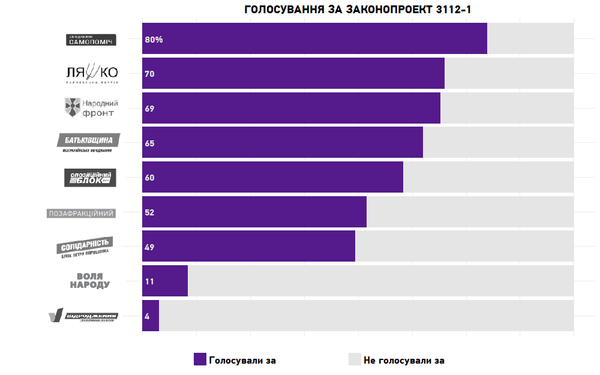 Найактивніше за виборчу реформу голосували у фракціях “Об’єднання “Самопоміч”, Радикальної партії Олега Ляшка, “Народний Фронт” та “Всеукраїнське об’єднання “Батьківщина”. Найменше голосів віддали групи “Партія “Відродження” та “Воля народу”.