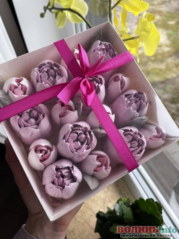Жителька Самарів Ірина Октисюк за півтора року перетворила цікавість до зефірних квітів на щоденну справу. Вона працює вчителькою в місцевому ліцеї, виховує двох дітей і паралельно створює їстівні композиції, які виглядають майже як живі букети.