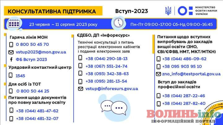 - Звертайтеся на гарячу лінію МОН за номером 0 (800) 50-45-70, або пишіть на пошту – vstup2023@mon.gov.ua.