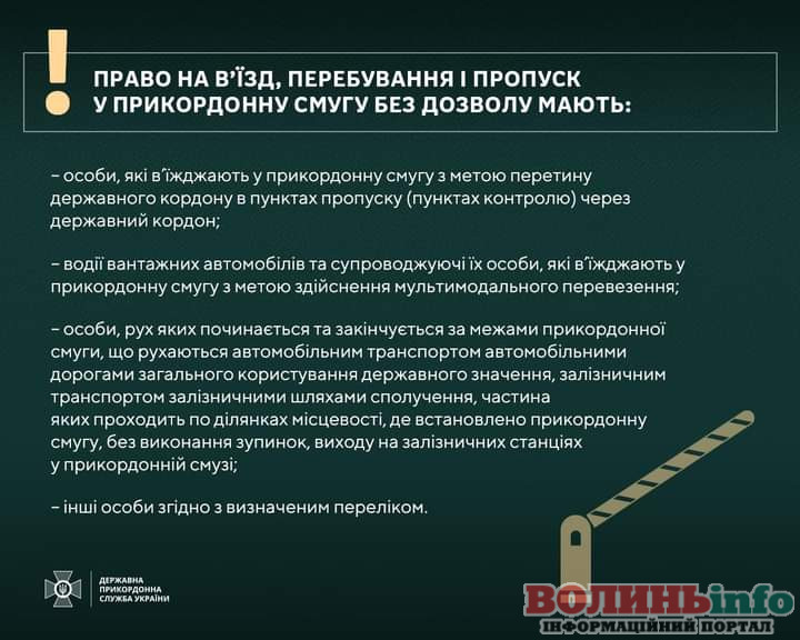 - громадяни України, іноземці та особи без громадянства мають право в’їжджати у контрольований прикордонний район, перебувати, проживати або пересуватися в його межах на підставі документів, що посвідчують їх особу;
