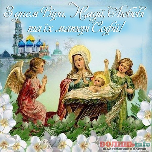 Сьогодні іменини у чудових жінок – Віри, Надії, Любові та Софії. Ви – символ цнотливості, тепла і жіночності. Нехай ваші святі покровительки завжди оберігають вас від негараздів і поневірянь. Віра в диво осяває ваш шлях добрими вчинками, надія в серці не тьмяніє ні на мить, а любов буде відданою супутницею протягом усього життя